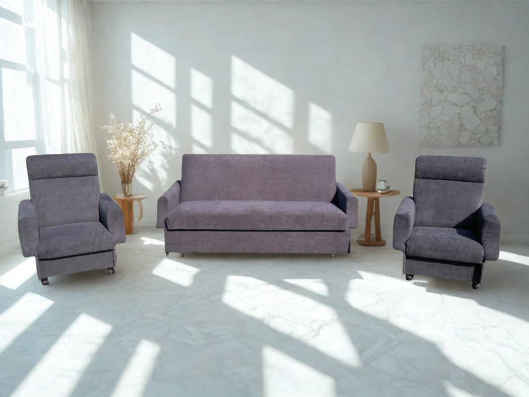 A kanapé nappal kényelmes ülőhelyként szolgál, míg néhány mozdulattal tágas fekvőfelületté alakítható, így ideális vendégágyként vagy akár mindennapi alváshoz is. A stabil szerkezet és a minőségi bonell rugós fekvő felület biztosítja a megfelelő komfortot és tartósságot. Fotelek alján görgők vannak , a könnyebb mozgatás végett.