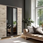 A Basic gardrób 160 centiméteres kialakításban rendelhető. A sötét katthult színű keret mellé katthult bútorlapszínt lehet választani. Egyszerű, minden sallangot nélkülöző nyílóajtós gardrób, a két középső ajtón tükör betéttel.