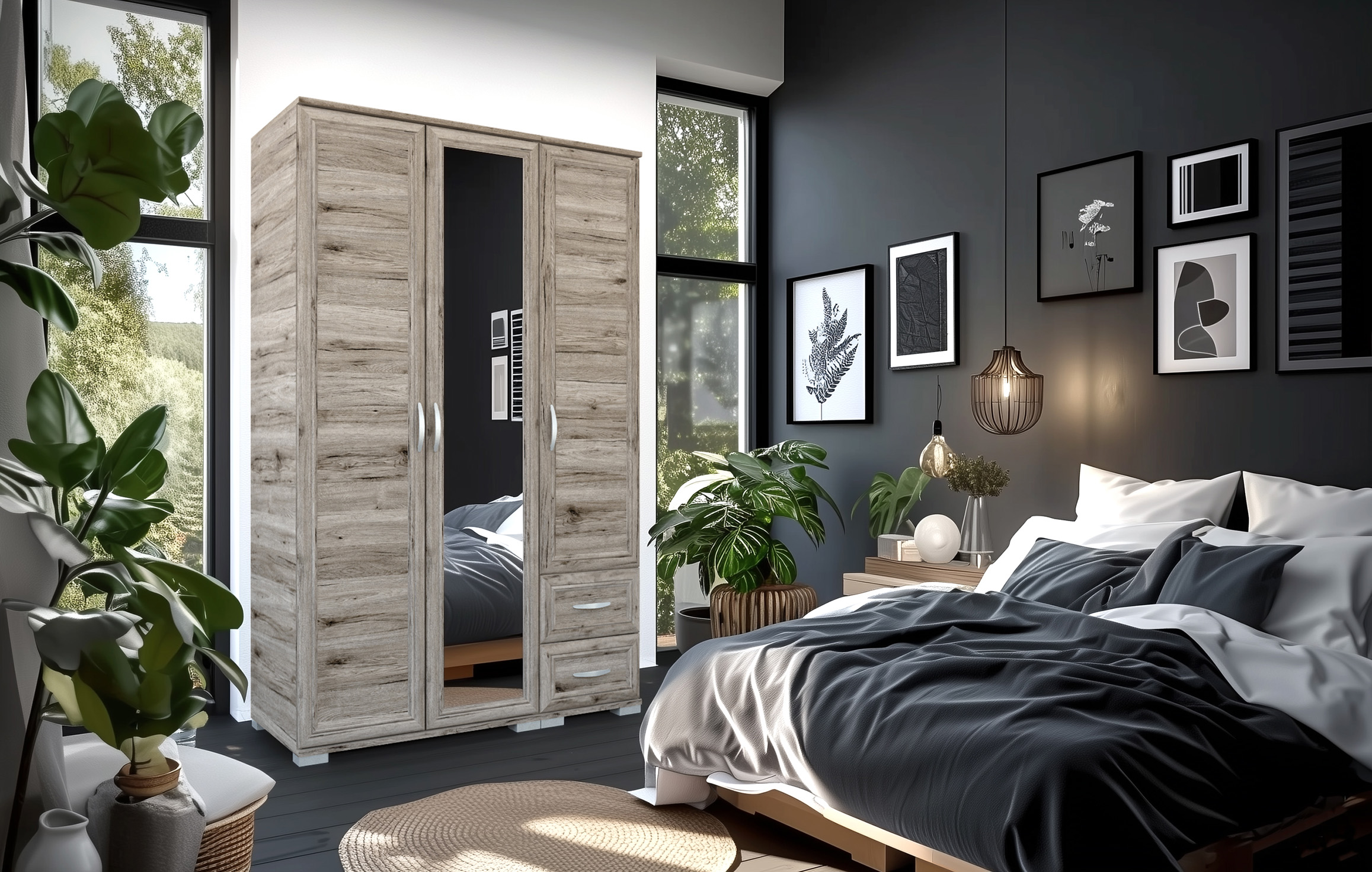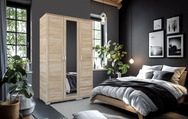 Elegáns, keretléces tükrös Bern gardróbunk sonoma tölgy és san remo színekben kapható. 135 cm, 180 cm és 270 cm-es méretben érhető el, melyekhez plusz sarokelem is rendelhető, ezzel jobban kihasználva a rendelkezésre álló teret.