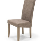 A zsákszövet és a texítlbőr használata minden korábbinál divatosabbnak számít. Nem véletlen, hogy a Berta szék kárpitozásán is visszaköszön. Stílusos, mégis egyszerű megjelenésénél fogva a bútor kiválóan passzol a modern és a hagyományos lakberendezési irányzathoz is. A pácolt lakkozott bükkfa láb a fa természetességével teszi stílusossá az étkezőt.