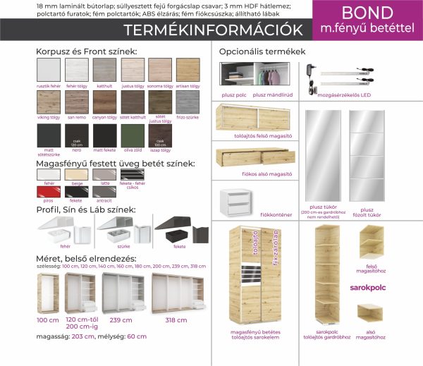 Bond 100cm-től 318cm-ig Magasfényű Betétes tolóajtós gardrób / DNY /