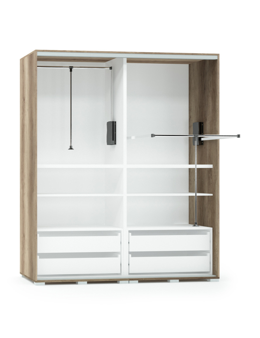 Az egyik legmagasabb gardróbunk a maga 240 centiméterével. A használhatóság megkönnyítésére ruhalifttel van ellátva.