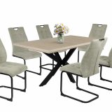 A Bruno szék szánkótalpas kivitelben készül a modern otthonok számára. Szövet ülőfelület és háttámla, hátoldalán velúr hatású kárpittal, fekete porfestett fém láb.