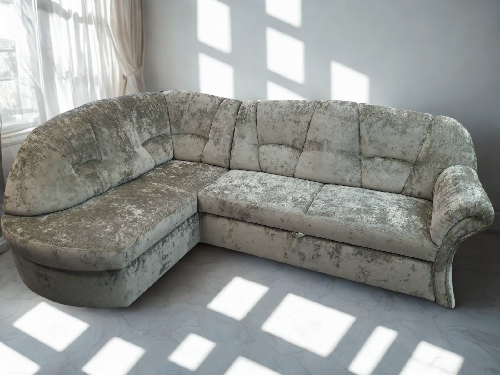 Elegáns, íves formavilág jellemzi, párnázott háttámlával és kartámlákkal, amelyek optimális tartást és kényelmet biztosítanak. Könnyen vendégággyal alakítható át, így praktikus megoldást nyújt éjszakai pihenéshez is. A rövidebb oldalon (ottomán) alatt tágas tárolóhely található az ágyneműk vagy szezonális holmik számára. Hullámrugós kivitelben készül, ami hosszú távú tartósságot és kényelmes ülést garantál.