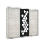 A Honey gardrób egyedi tükör dekorációval azonnal felhívja magára a figyelmet. Kellemes bútorlapszínek, a tér növelése mind-mind jellemzik a gardróbot. 140, 160, 180, 239, 318 cm-es kivitelben kapható, és 17 bútorlapszín közül választhatnak kedvükre. A tolóajtónak köszönhetően a tér maximális kihasználását is lehetővé teszi. Belső elrendezése bővíthető polcokkal, fiókkonténerekkel, mándli rudakkal. Alsó és felső magasító is kérhető hozzá.