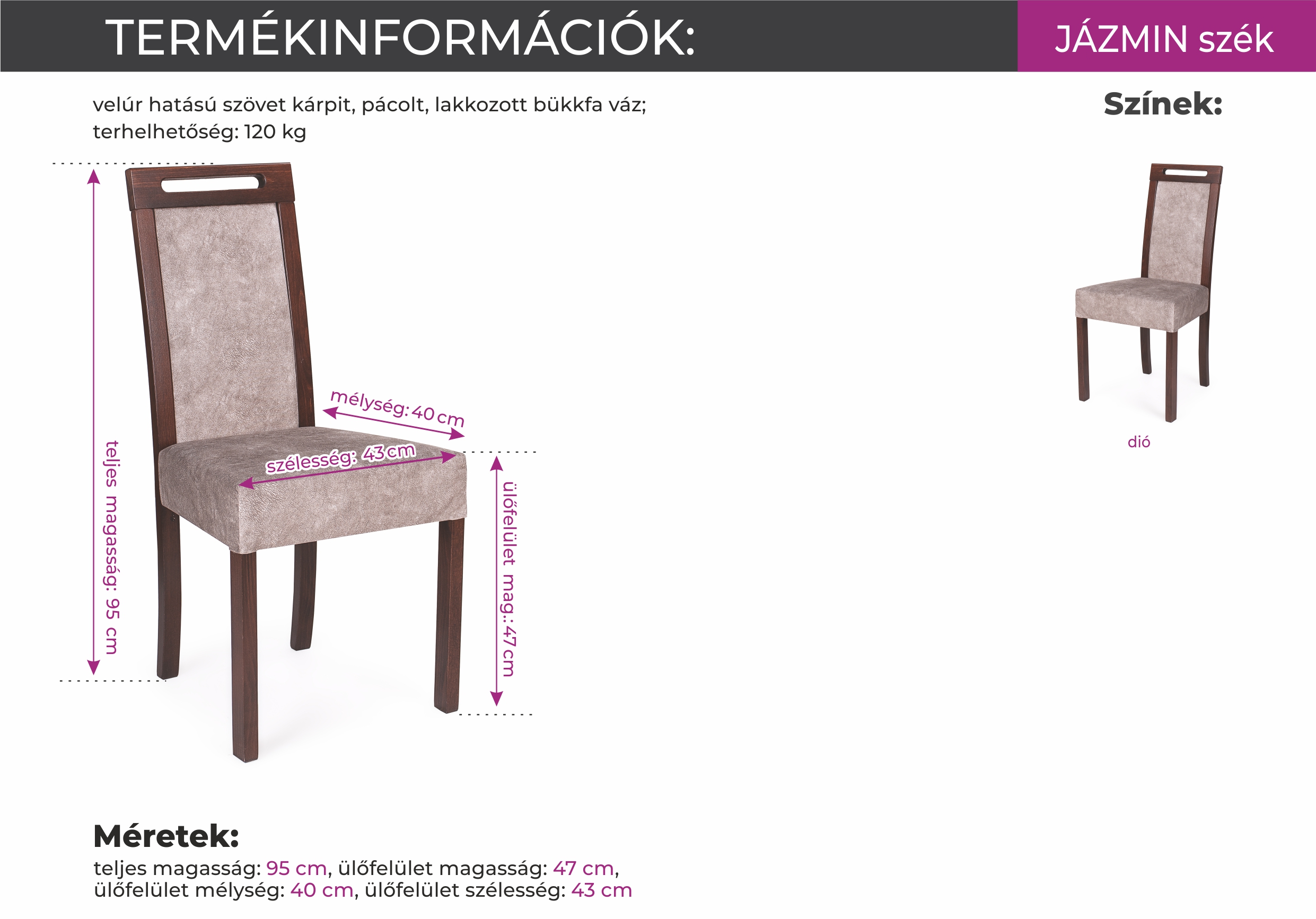 Jázmin 4 személyes étkező Enzo 120 cm asztallal / DNY /