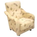 Egyszerű letisztult kis fotel íves karfával , görgővel felszerelve a könnyebb mozgatás miatt.