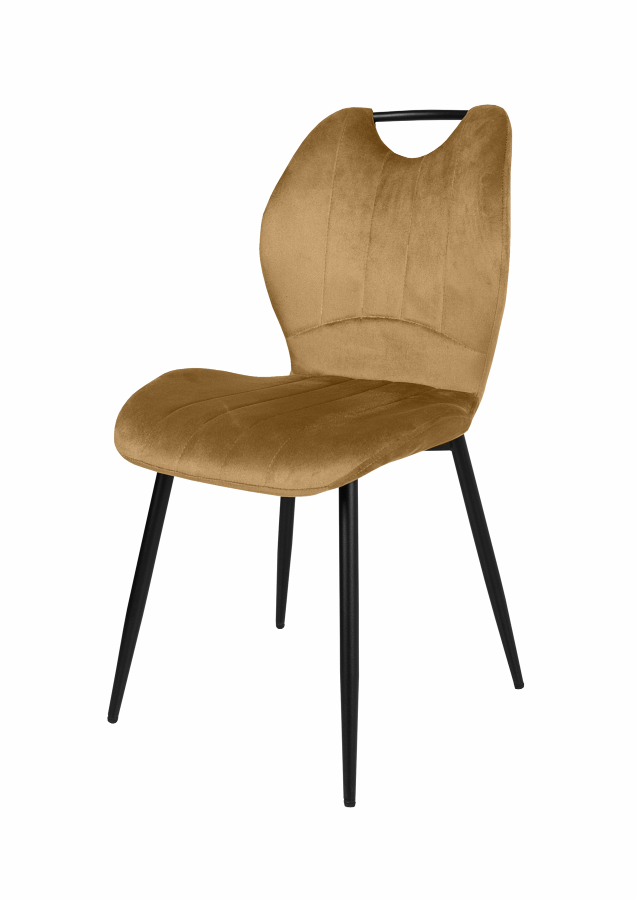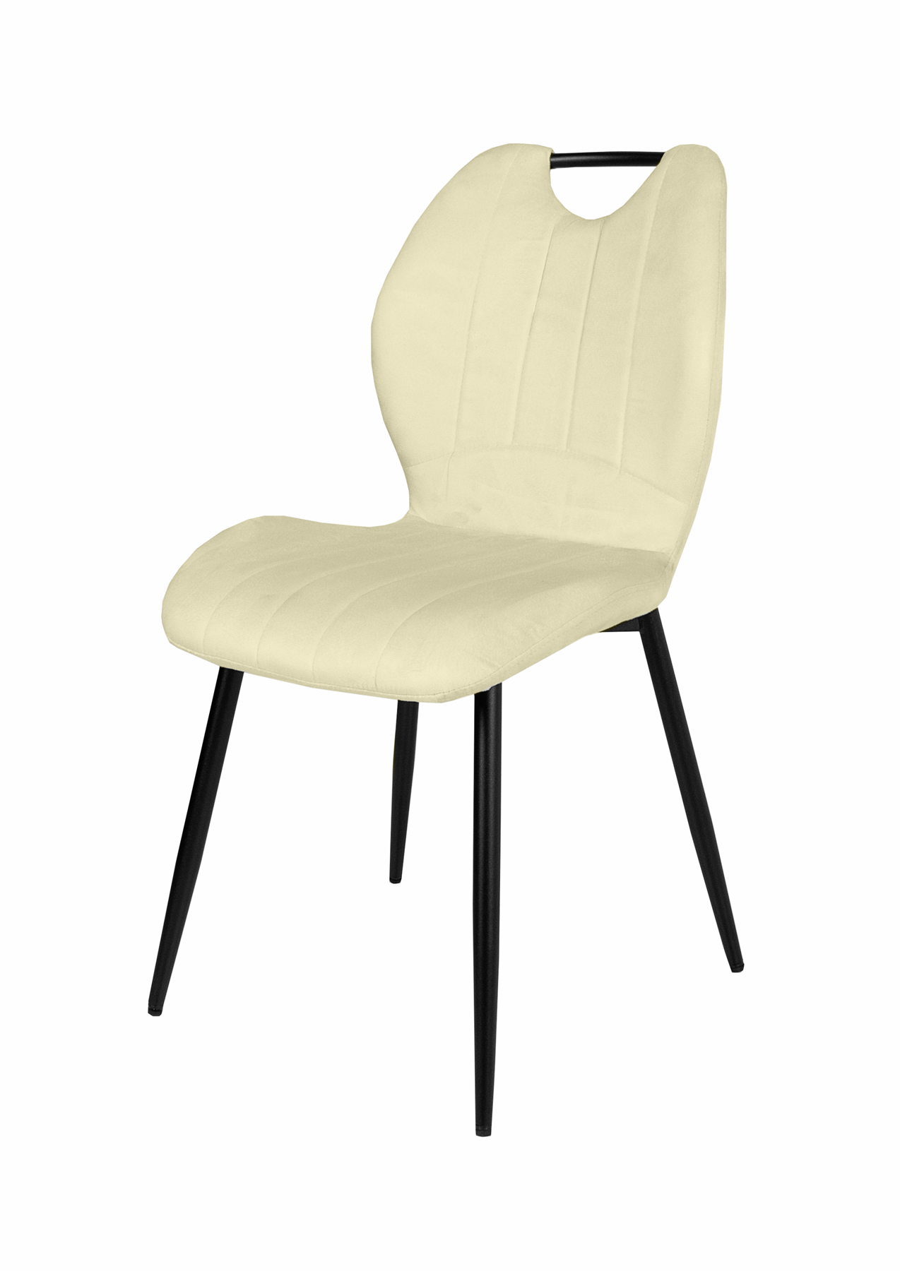 3 színben elérhető szövet kárpittal és fekete porfestett fém lábakkal készült a Kinga szék. Kényelmes ülőfelület, kellemes tapintású plüss kárpittal.