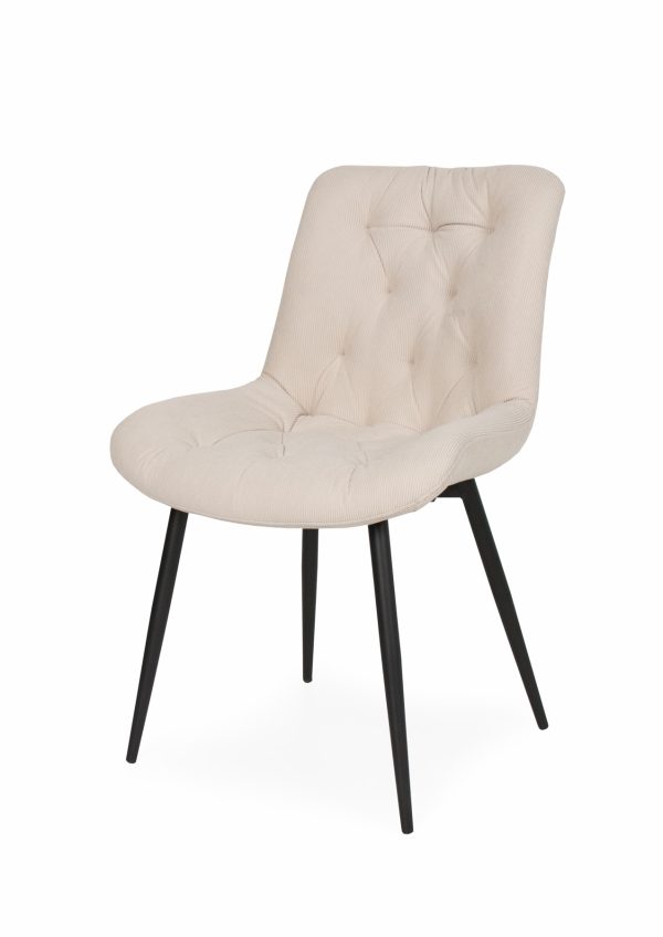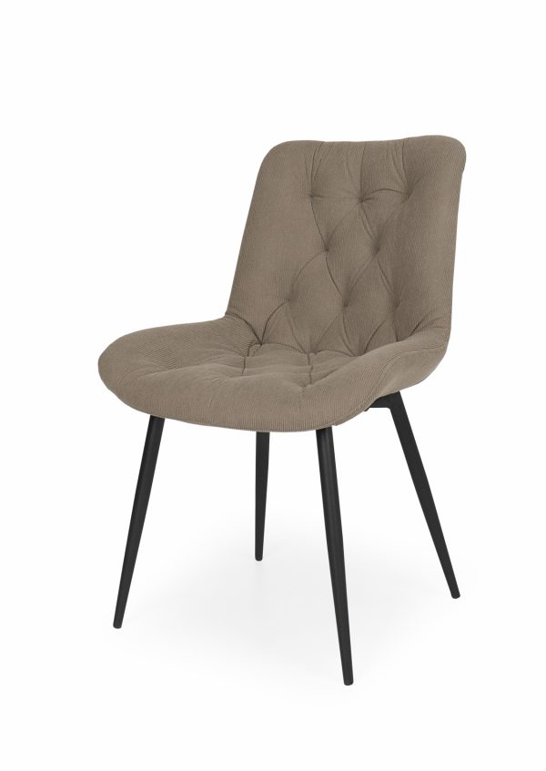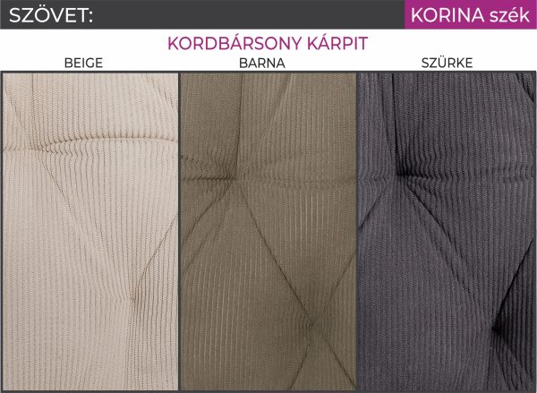 Korina székünk modern és elegáns. Fekete porfestett fém lábakkal és puha bordázott kordbársony kárpittal rendelkezik, beige, barna és szürke színben.