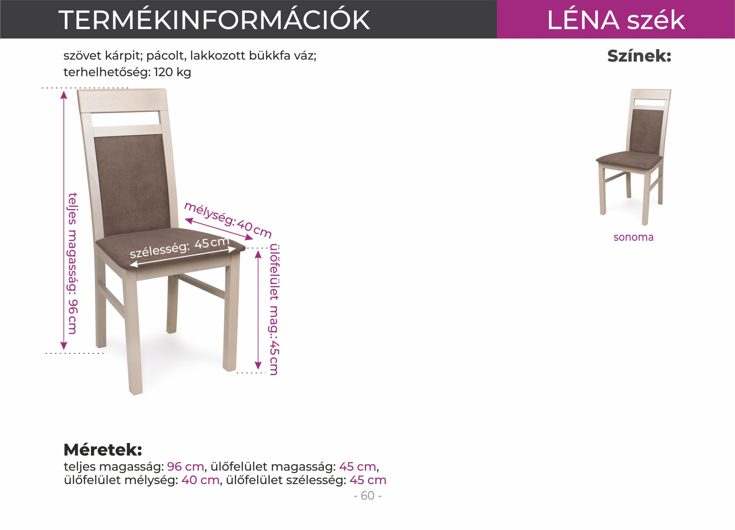 Bükkfa váz és szövet kárpit jellemzi a Léna széket, mely tökéletes eleme a klasszikus étkezőknek.