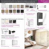 Elegáns külső, praktikus belső elrendezés jellemzi. A 2 ajtó 8 panelből áll. Az oldalfal 11-féle színben, a panelek 2-féle (magasfényű antracit, illetve magasfényű fehér) színben kérhetőek, így a legkülönfélébb színvariációk állíthatóak össze. Gardróbunk rendelhető egy színben, soronként vagy akár sakktábla minta szerint változó színű ajtóval. Még a profil színét is kiválaszthatjuk, lehetőség van szürke vagy fekete profillal kérni a terméket. A 210 cm-es magasságnak és a 7-féle szélességnek köszönhetően remek választás a kisebb szobával rendelkezőknek és a nagy tárolóhelyre vágyók számára egyaránt.