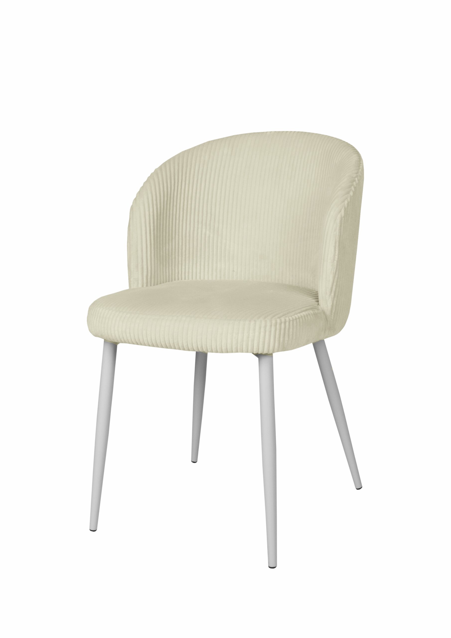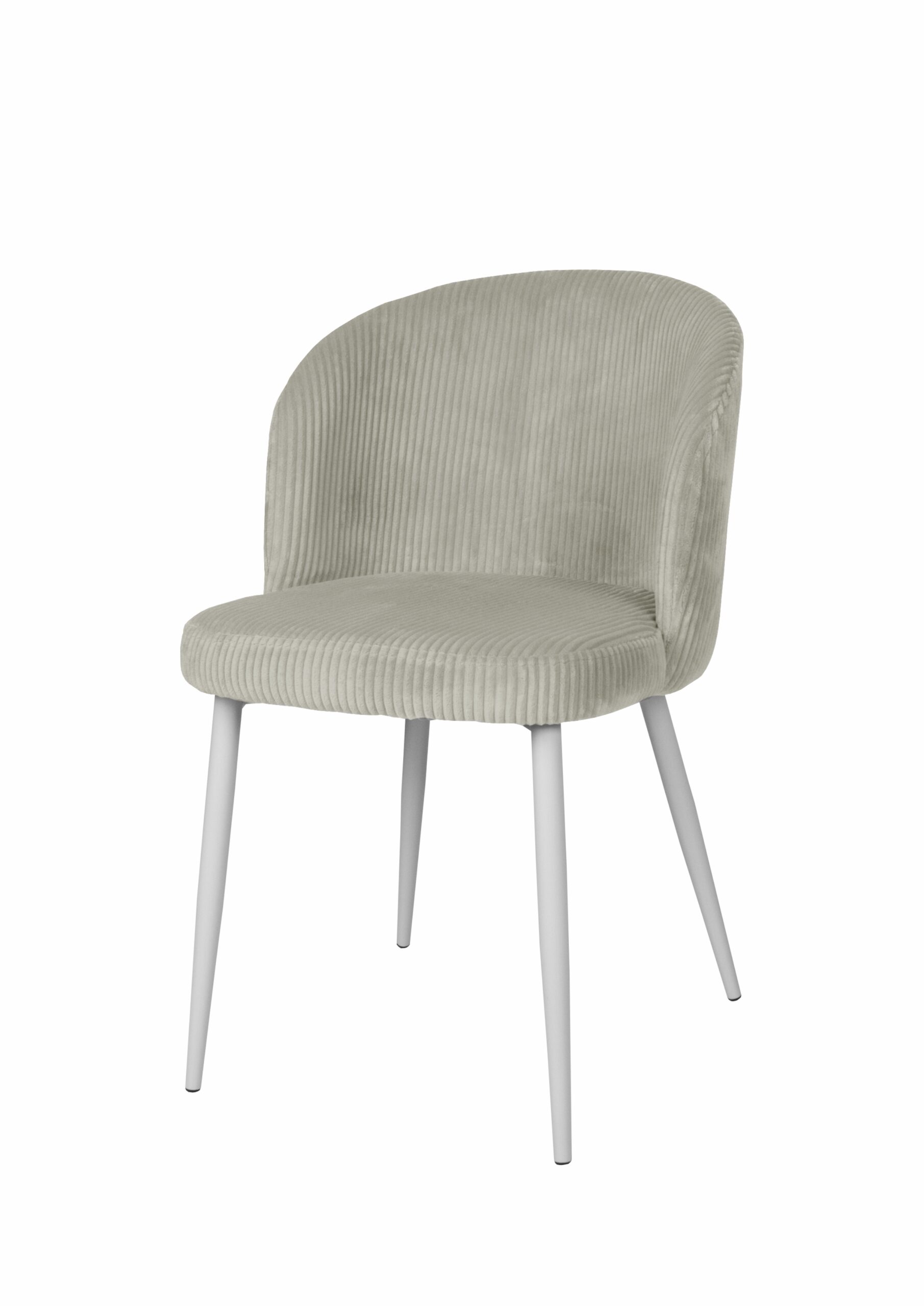 Az Olaf székünk 3 kellemes színben kapható, kordbársony szövettel. A beige, világosbarna és világosszürke szövetet fehér festett fém lábak teszik még elegánsabbá.