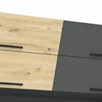 Az Onix szekrénysor 340 cm-es méretben kapható. Jól kihasználható részekből épül fel. Nemcsak praktikus, de kifejezetten mutatós az ajtók és fiókelők nem mindennapi alakja. A matt sötétszürke szín remekül harmonizál az artisan tölgy, san remo és rusztik fehér ajtókkal. A szekrénysor kérhető tükrös változatban is, illetve opcionálisan LED világítással is kiegészíthető.