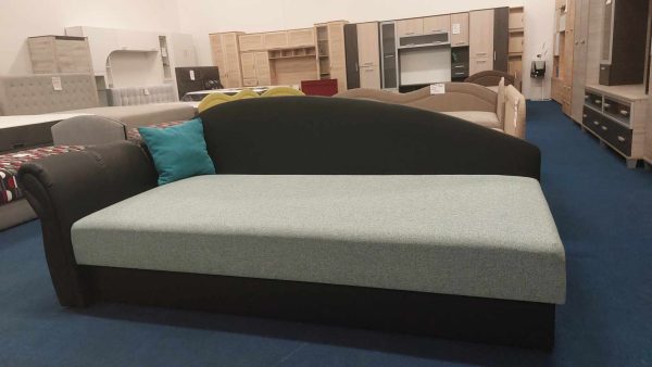 Egyszemélyes, kárpitozott hálószobabútor, ágyneműtartóval.