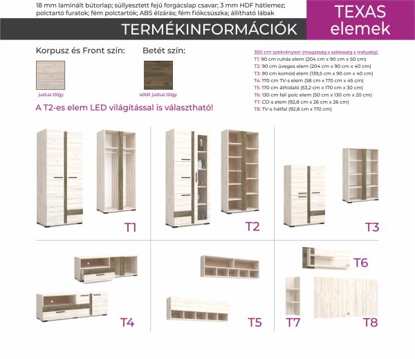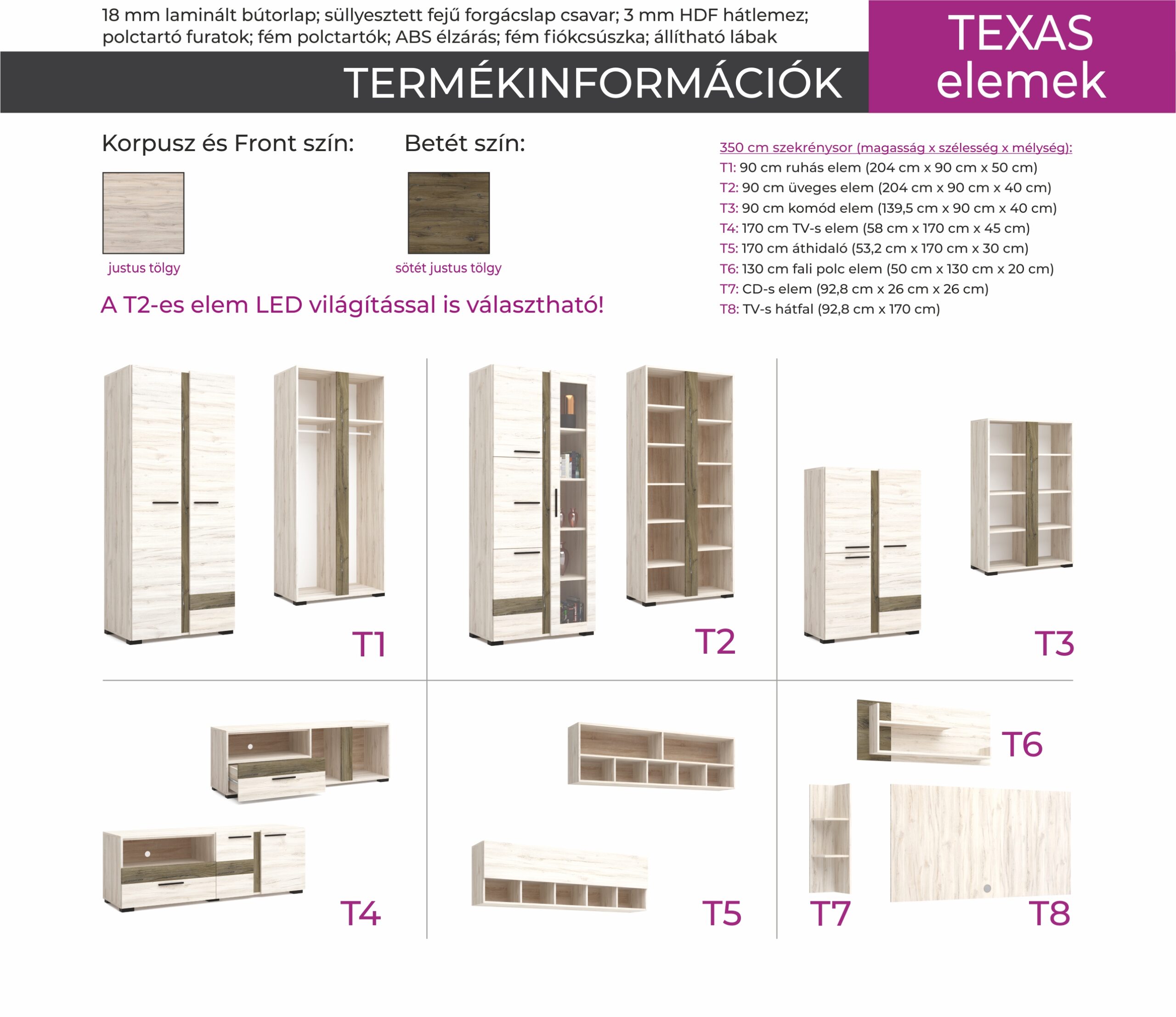 A Texas elemeiből szabadon variálva többféle nappali elemes bútorverzió is összeállítható belőle !