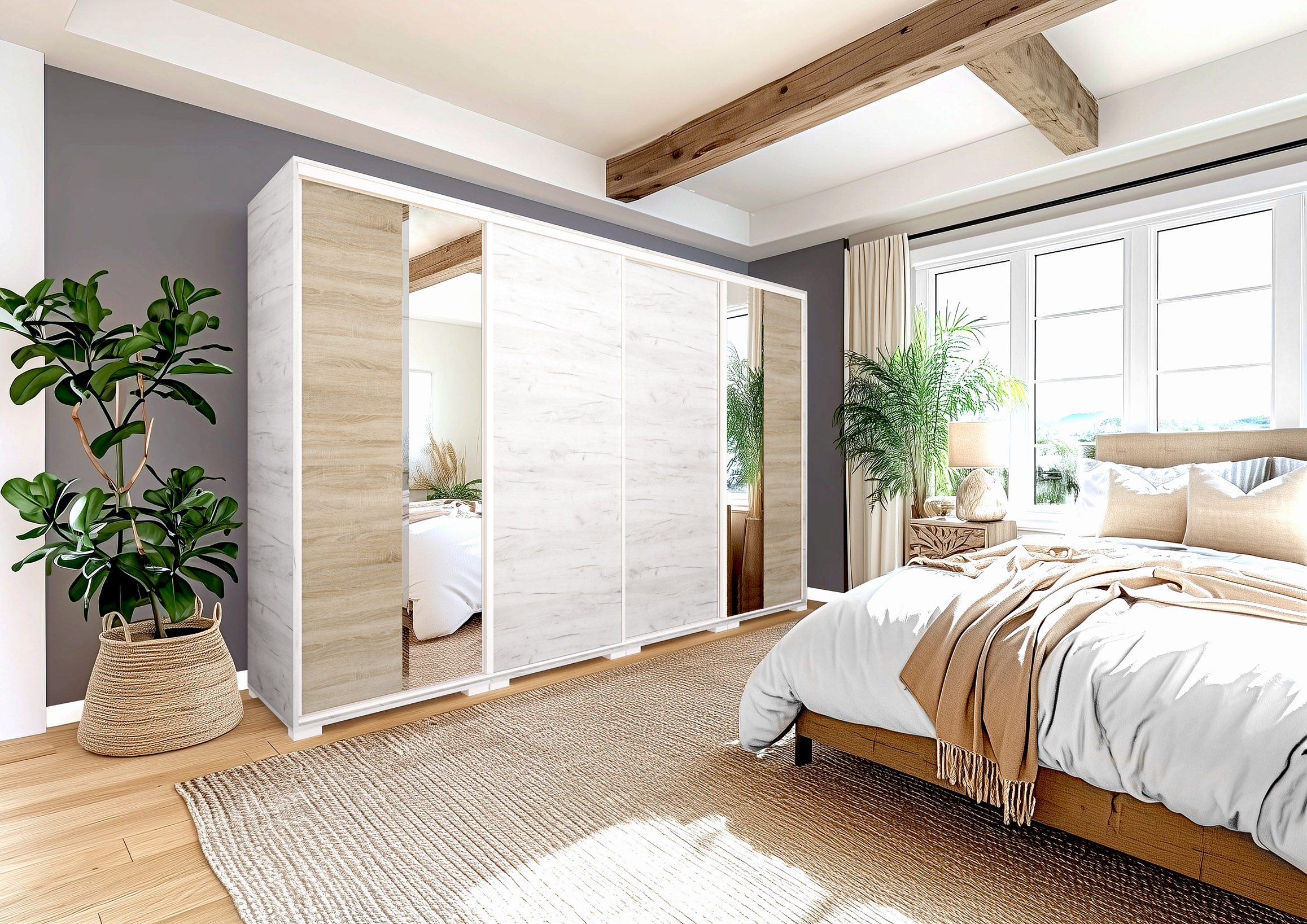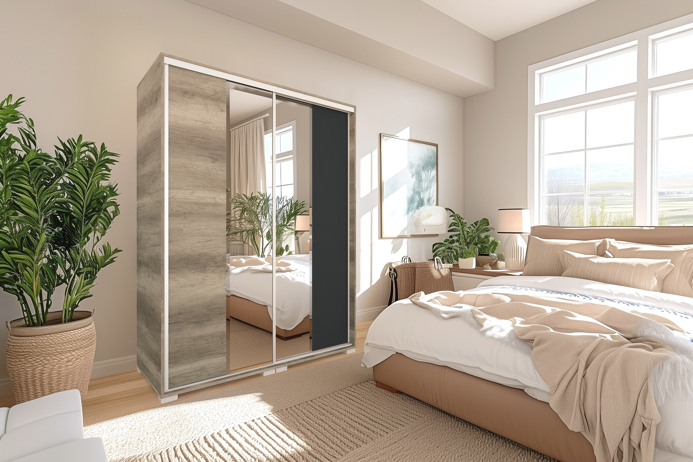 Vigo gardróbunk 2 fózolt tükrös ajtóval készül. 2 ajtós kivitelben a korpusz-bal ajtó színhez szabadon válsztható a jobb ajtó szín. 3 és 4 ajtós kivitelnél pedig a korpusz-középső ajtó színhez a 15-féle bútorlap színből bármely színű ajtó szabadon választható szélső ajtóként. Megjelenésével az Ön hálóját is elegánssá varázsolja.Akinek kisebb tér áll rendelkezésre, éppúgy megtalálhatja a megfelelő méretűt, mint a tágas hálószobával rendelkezők, hiszen 7 méretben kapható, melyek mindegyikét opcionálisan rendelhető termékeinkkel egészítheti ki. Rendelhető hozzá: – sarokpolc – tolóajtós sarokelem – Vigo plusz tükör (239 cm-es és 318 cm-es gardróbokhoz) – fiókos alsó magasító – tolóajtós felső magasító. Az opcionális termékek plusz költséget jelentenek.