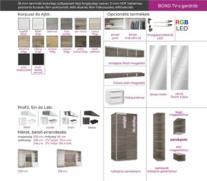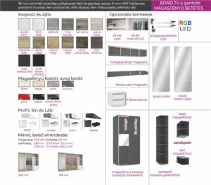 Bond 318 cm Tv-s magasfényű betétes tolóajtós gardrób /DNY/