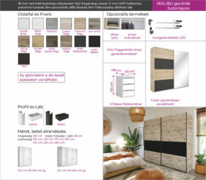 Malibu 134cm-től 254cm-ig tolóajtós gardrób bl. / DNY /