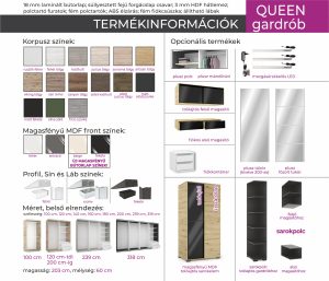 Queen tolóajtós magasfényű gardrób 100cm-től 318cm-ig / DNY /
