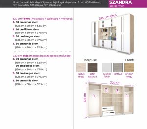 Szandra 320 cm ajtós szekrénysor /DNY/