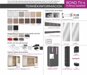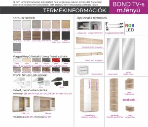 Bond 239 cm Tv-s magasfényű betétes tolóajtós gardrób /DNY/