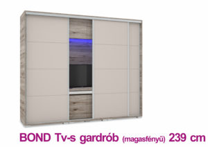 Bond 239 cm Tv-s magasfényű tolóajtós gardrób /DNY/