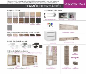 Mirror 239 cm Tv-s tolóajtós gardrób /DNY/